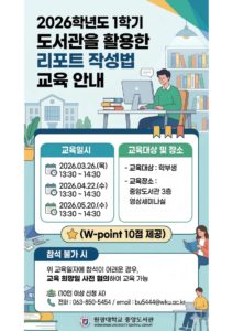 2026학년도 1학기 중앙도서관 리포트 및 논문 작성법 교육 안내_1